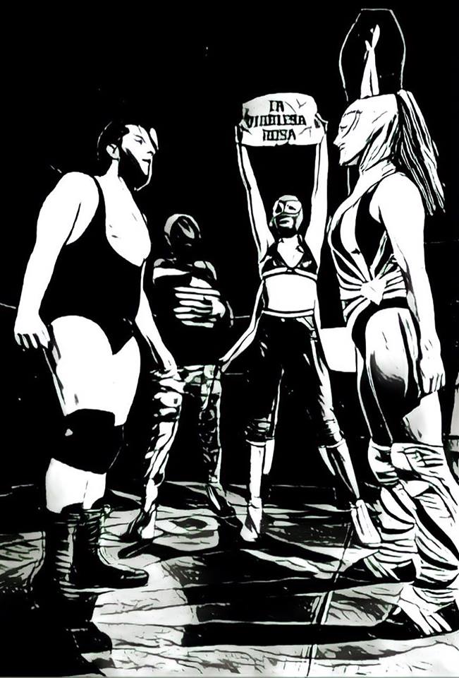 Rosa’s about 5 foot 5, pink mask, pink boots, coloured leotard. She’s out and about the ring parading the belt.