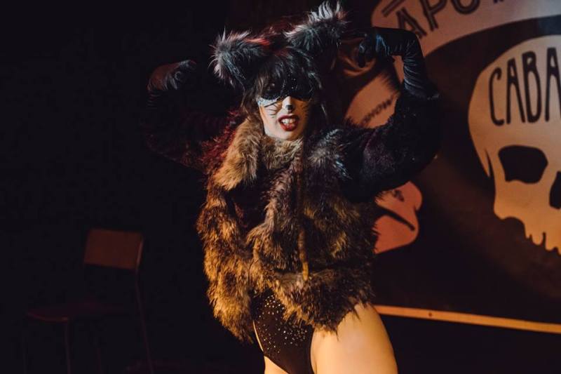 The performance is cunning; a dimly lit outline of a dancer in an 18th century theatre. Wax and wine comes out, poured over her arms and chest…running down her body. The vampire’s delight!